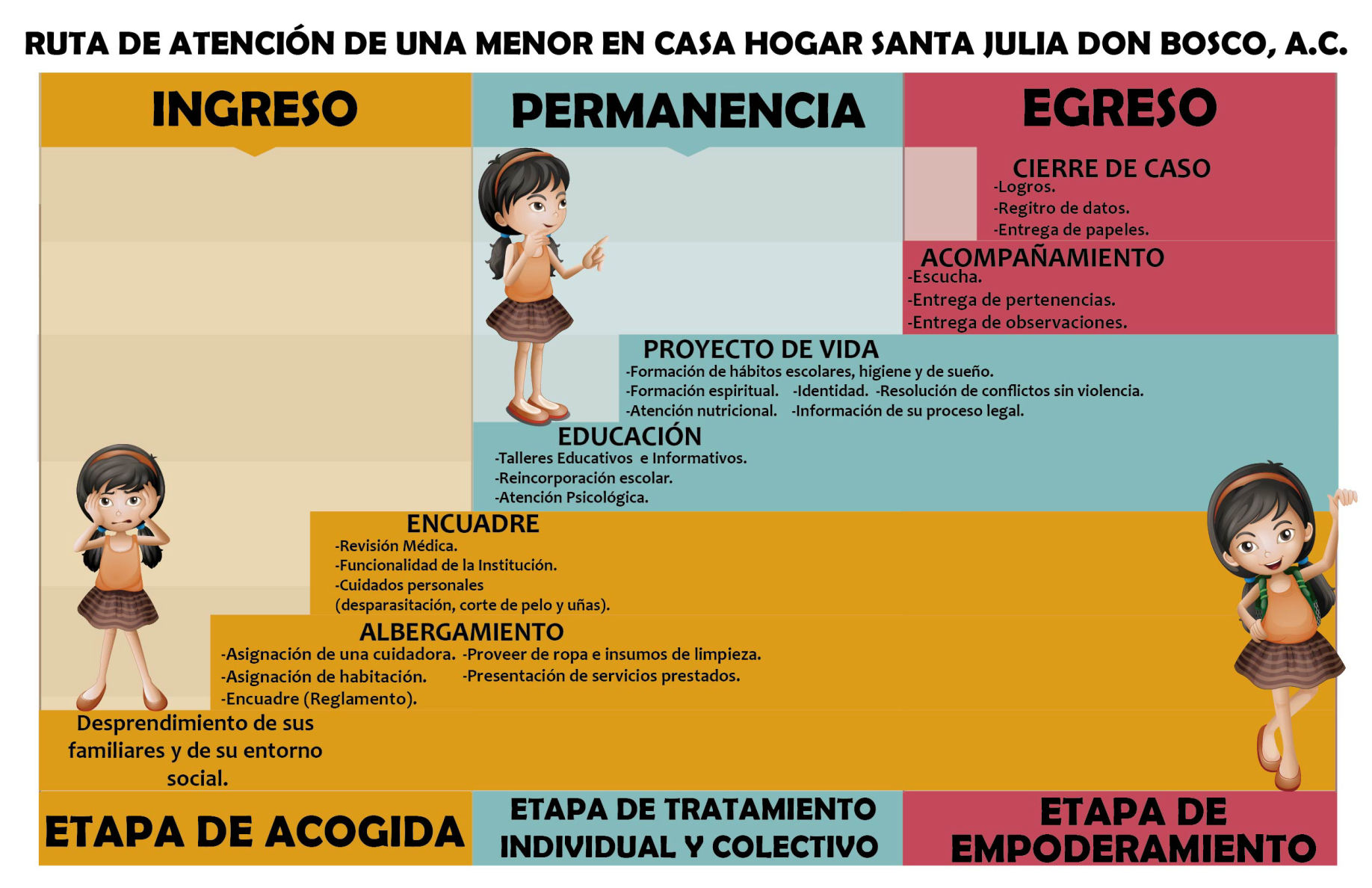 • La menor de edad debe ser canalizada por una Institución gubernamental con el poder legal de resguardo (Ministerio Público, Procuradurías y diferentes DIF´s del Estado).